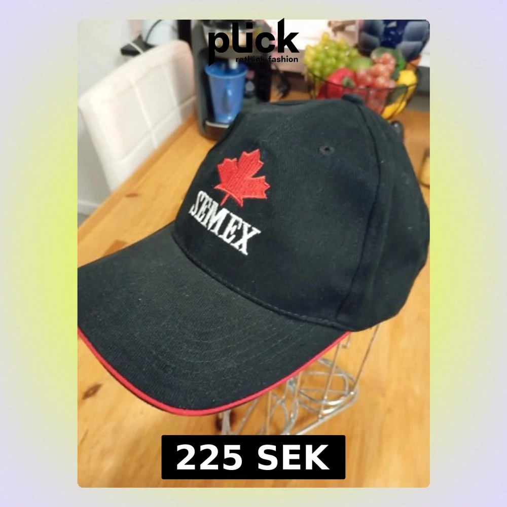 Snygg svart keps Semex med broderat rött lönnlöv och vit text framtill. Röd kant på skärmen och justerbar rem med 'SWEDEN' broderat baktill. Tillverkad i bomullstyg, perfekt för dig som gillar unik stil och internationella vibbar.