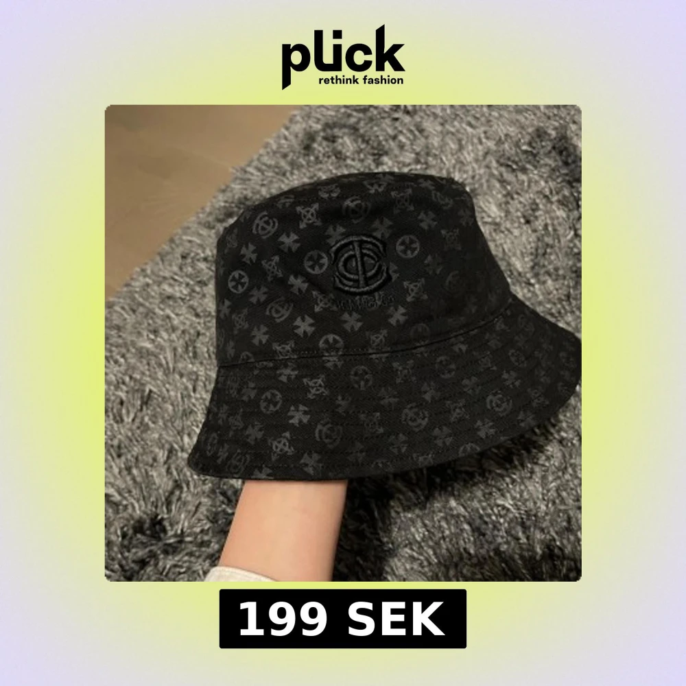 Snygg svart bucket hat med diskret mönster och broderad text. Perfekt för att ge din outfit en cool touch. Passar både till vardag och speciella tillfällen.