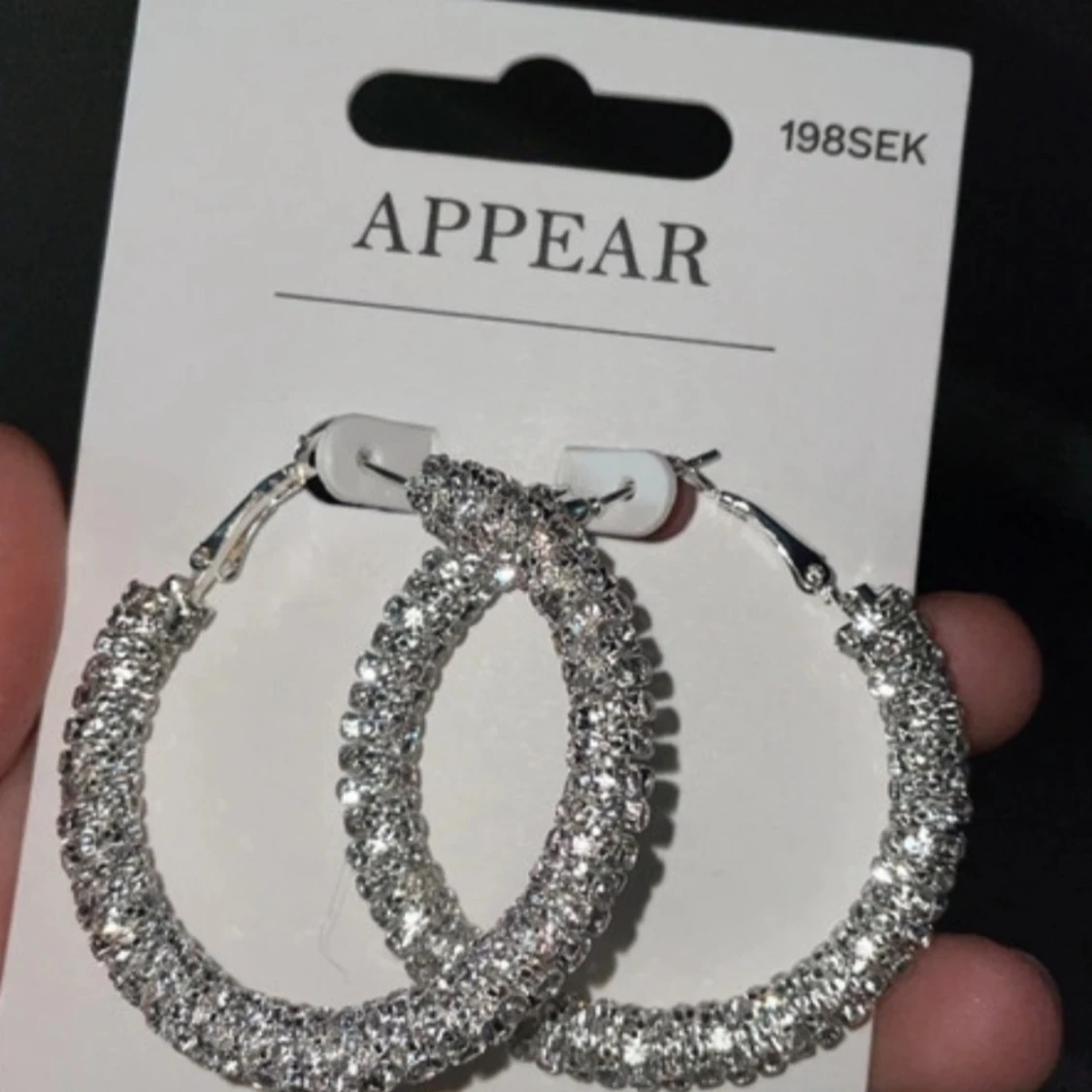 Snygga glittriga silverörhängen i creolmodell från Appear. Perfekta för fest eller nåt liknande. Helt nya. Original pris 198kr