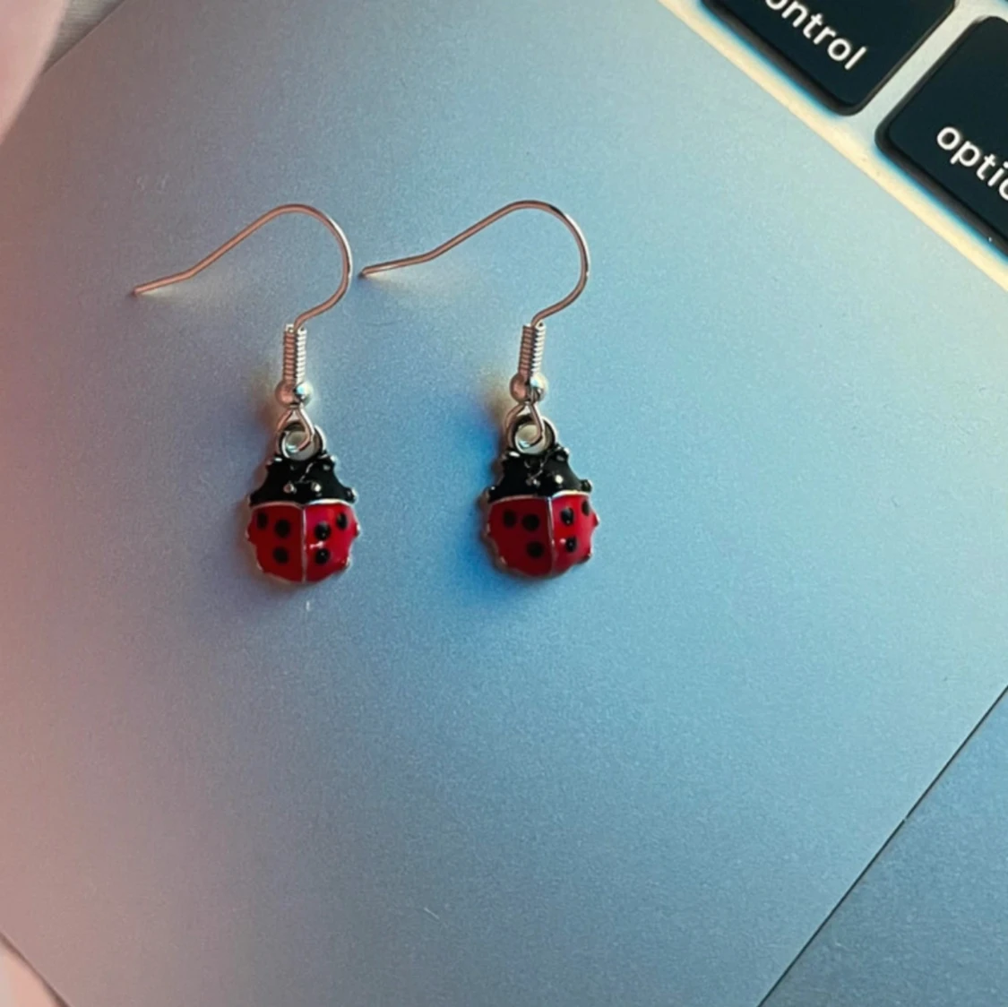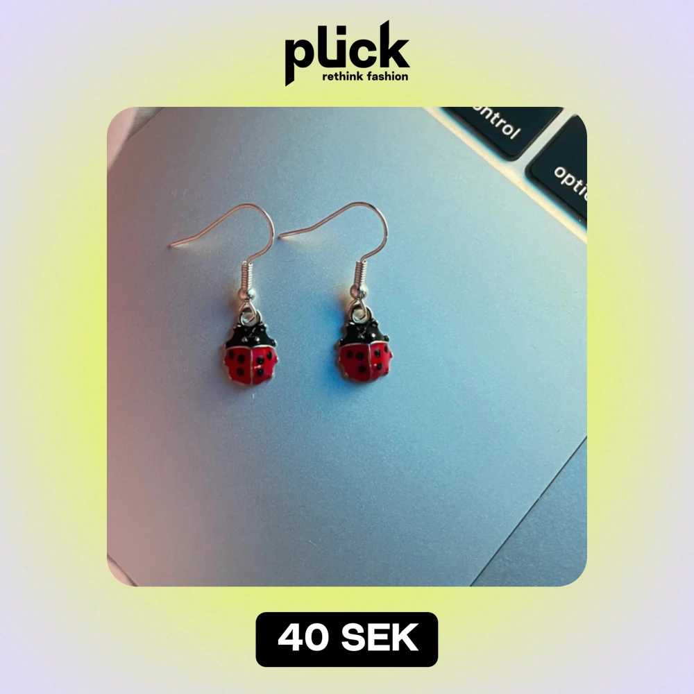 Charmiga örhängen i form av nyckelpigor. De har en röd och svart färgkombination och är perfekta för att lägga till en lekfull touch till din stil. Passar både till vardag och speciella tillfällen.