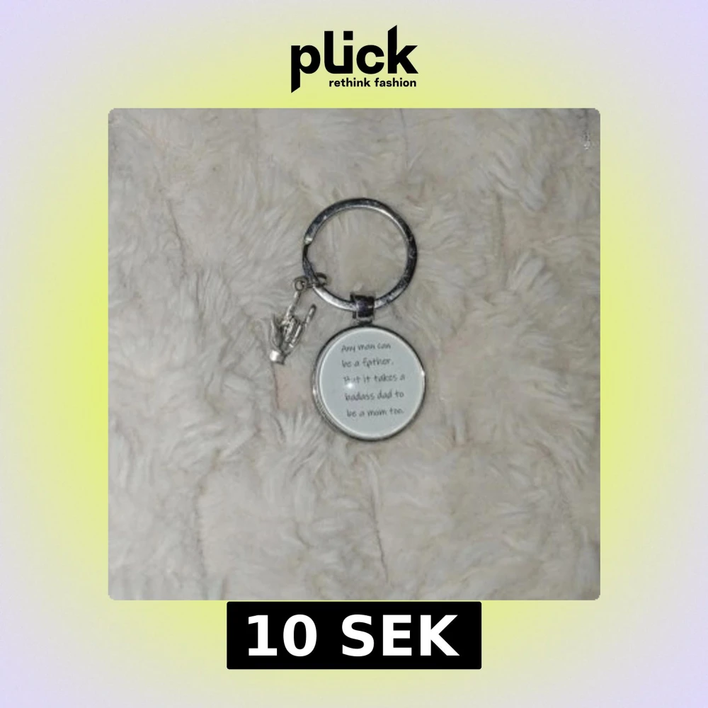 Cool nyckelring i silverfärgad metall med rund bricka där det står 'Any man can be a father. But it takes a badass dad to be a mom too.' och en liten handberlock som gör rocktecknet. Perfekt accessoar till väskan eller nycklarna.