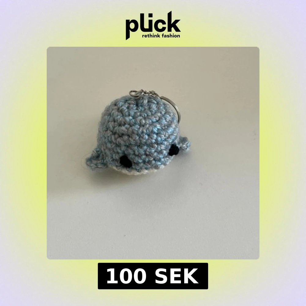 Charmig handgjord virkad nyckelring föreställande en söt blå val. Perfekt som accessoar för att ge din nyckelknippa en personlig touch. Den är mjuk och lätt att bära med sig.