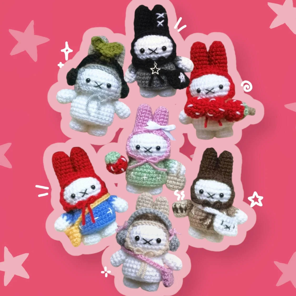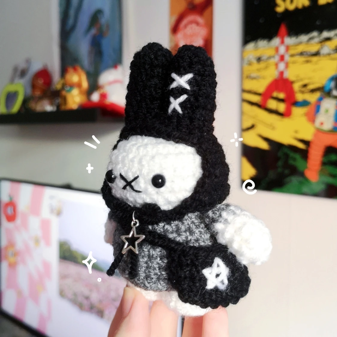 Supersöt virkad Miffy i grĂ„tt & svart och matchande vĂ€ska med broderad stjĂ€rna. Perfekt dekoration pĂ„ skrivbordet / hylla hos en Miffy Ă€lskare! Kan ocksĂ„ göras till nyckelring đ Frakt 18kr via swish eller anvĂ€nd KĂP NU! Postas inom 5 dagar efter betalning đ€âš