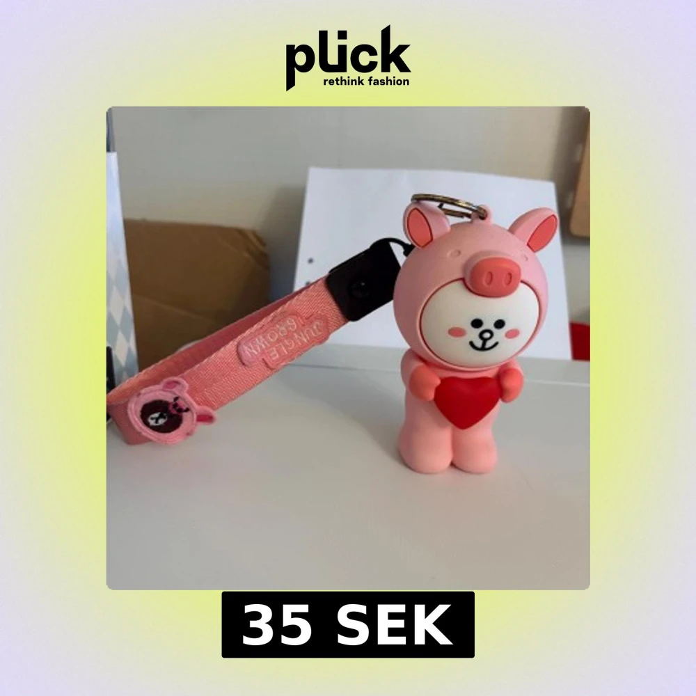 Söt nyckelring i form av en rosa björn med grisöron som håller ett rött hjärta. Tillverkad i mjuk syntet och har en dragkedja på baksidan. Perfekt som accessoar till väskan eller nycklarna.