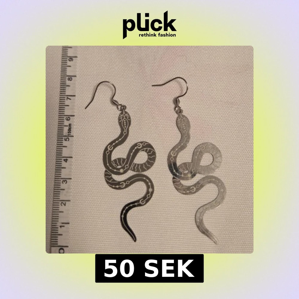 coola örhängen med ormar i spegel liknande metall från svenska märket pill & punch som säljer handgjorda smycken. aldrig använt.