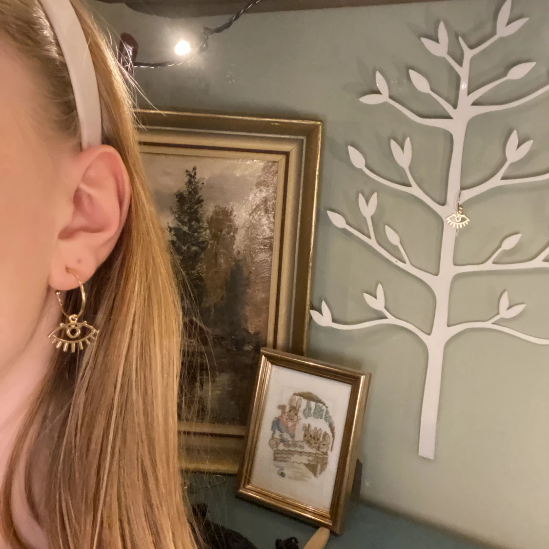Guldiga örhängen med ögon. Aldrig använda förutom nu på fotot så är i bra skick och kommer alltid att tvätta smyckena ordentligt före leverans. Kommer inte ihåg vart dem kommer ifrån för köpta för ganska länge sedan men är i toppen skick.