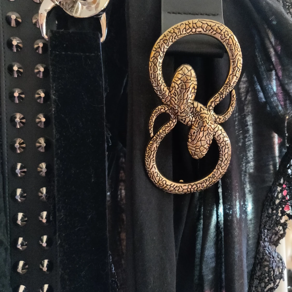 Säljer ett jättefräckt skärp med orm-buckle. S/m. Endast provat. Jag bjuder på frakten. Pussokram från Loppan 🤙