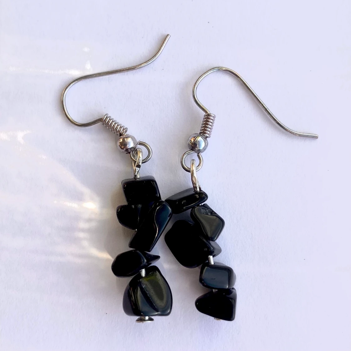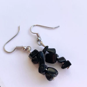 Örhängen med kristallchips av halvädelstenen obsidian. Örhängena är nickelfria🤍