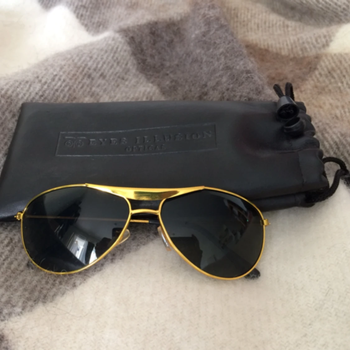 Gyllene solglasögon i pilotmodell. Aldrig använda. Liten i storleken, se bild.