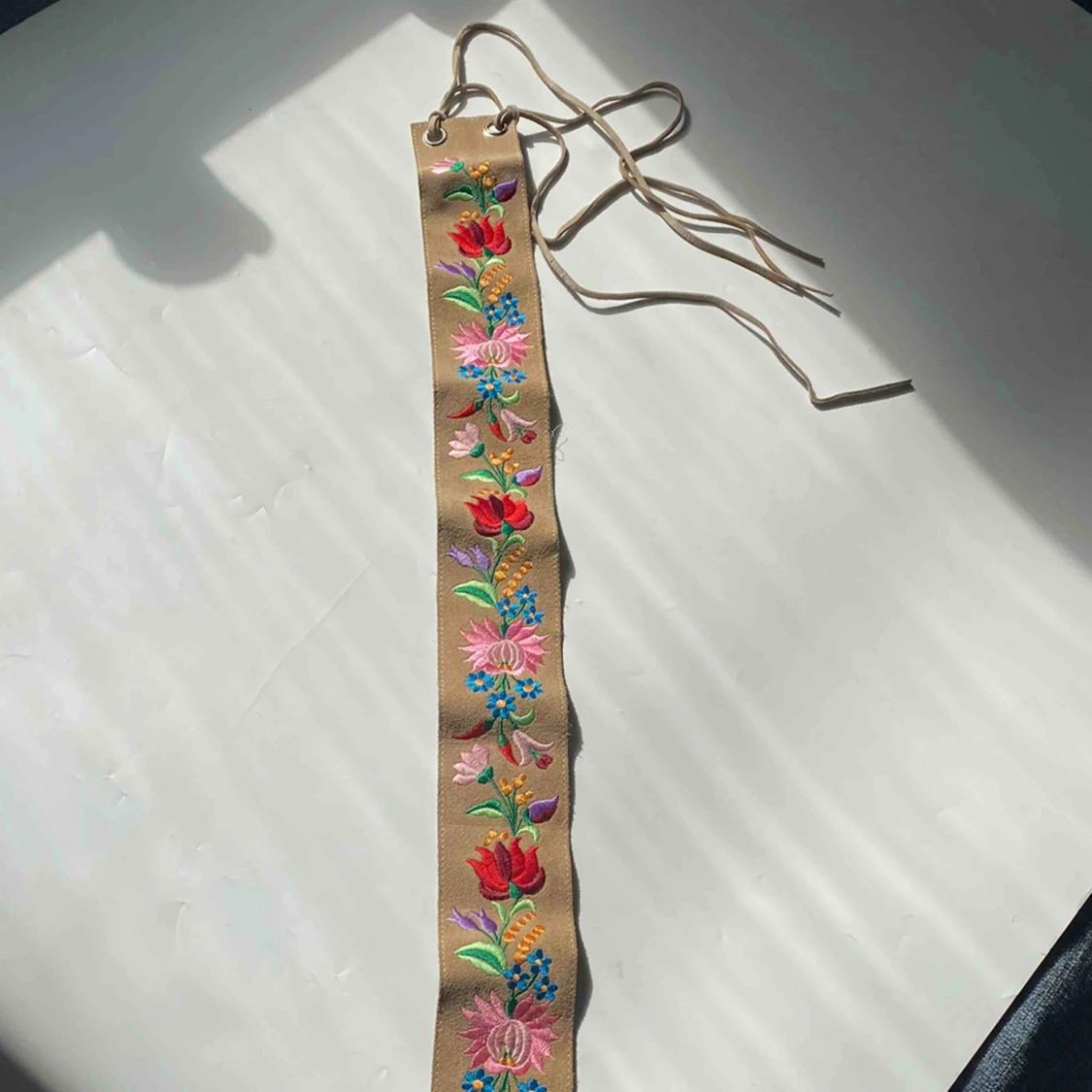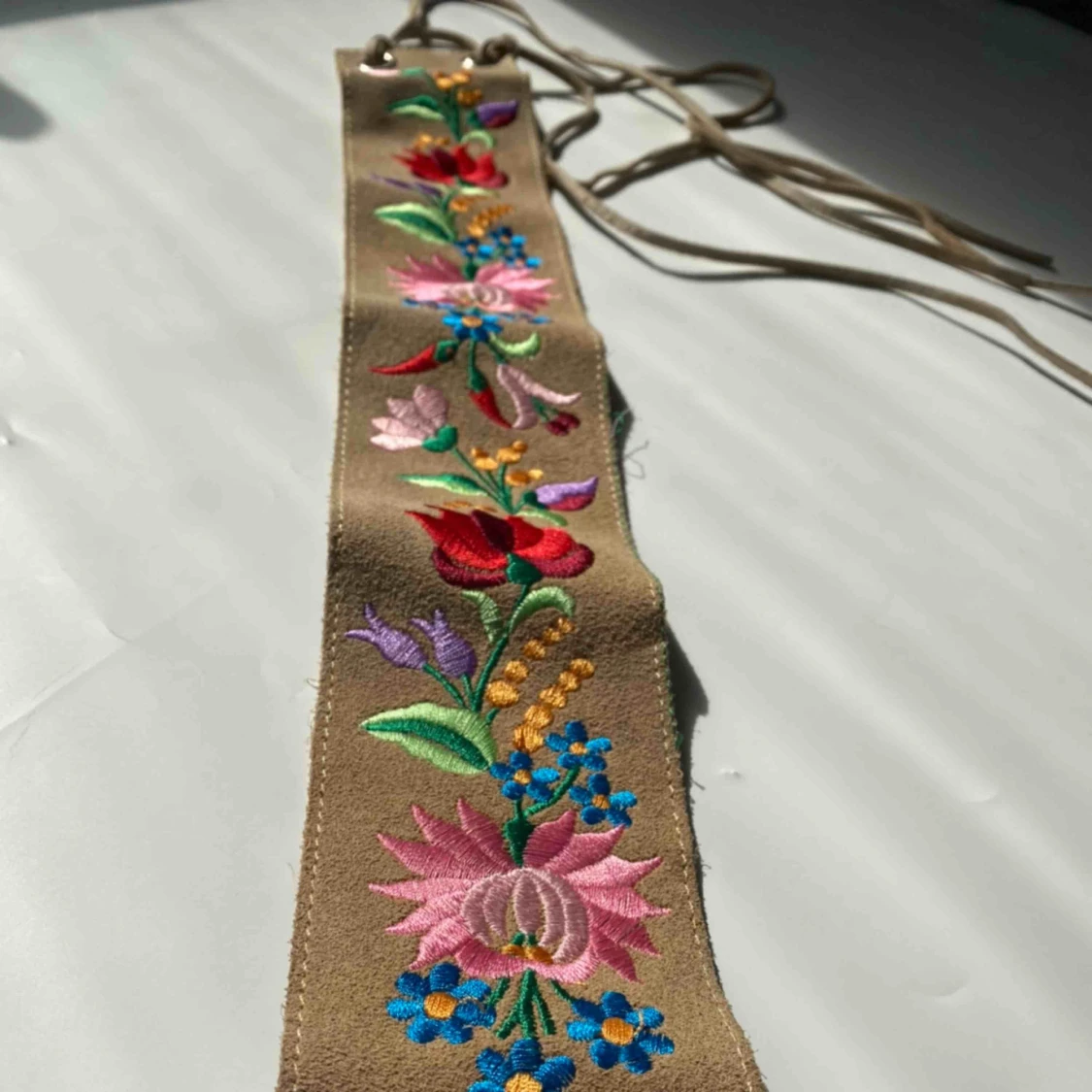 Ett handbroderatt band som man har vid midjan! Passar bra till klĂ€nningar đ I gott skick!