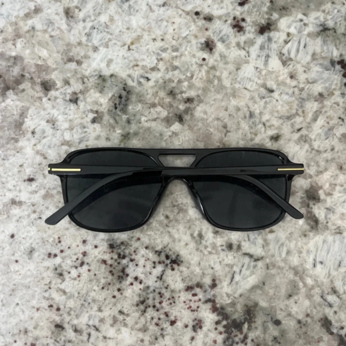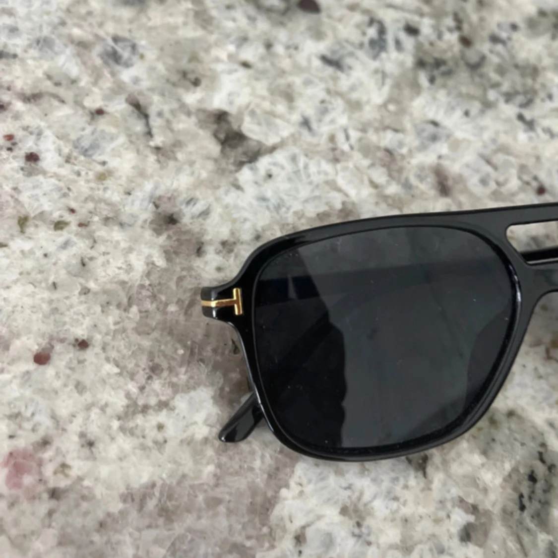 Snygga svarta solglasögon från Tom Ford med pilotinspirerad form och mörka glas. Ramen är i svart plast med guldiga T-detaljer på sidorna och överdelen. Perfekt accessoar för en cool look och passar till många stilar. (R3plica)