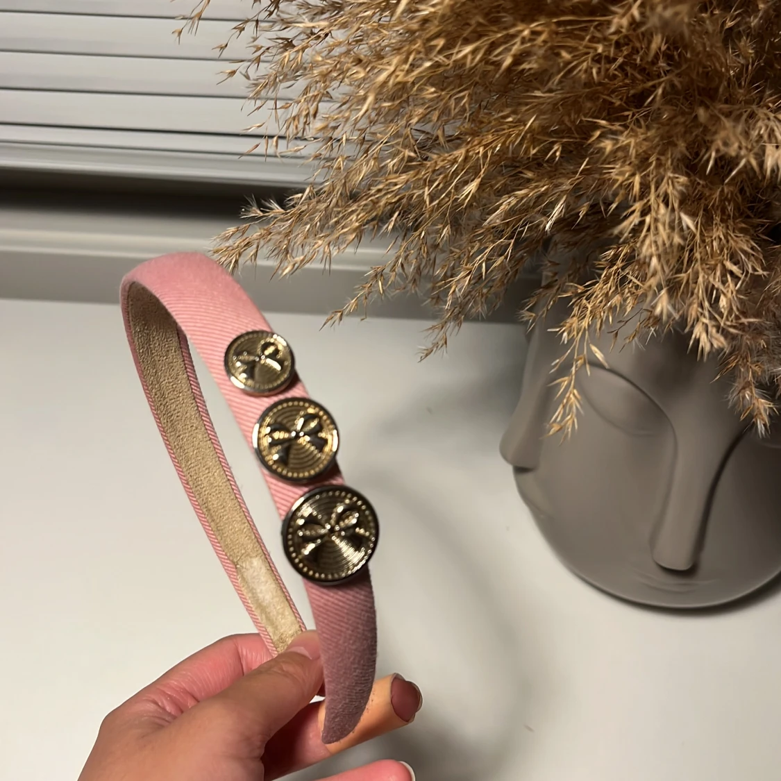 Ett ljusrosa diadem i textil- ”finish” och med guldiga detaljer. Använt några gånger och i fortsatt fint skick 🩷