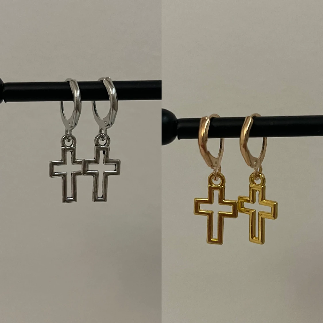 Säljer kors örhängen som säljs i par. Har ett fåtal av dessa kvar. Superfina och rostfria. Finns i både guld och silver. Ett tips är att ta av sig dom om man tex ska duscha eller bada, så minskar risken att dom rostar. Väldigt billiga och prisvärda🤍