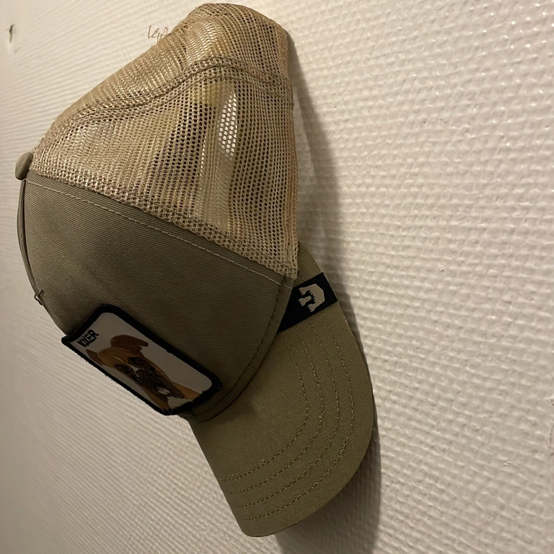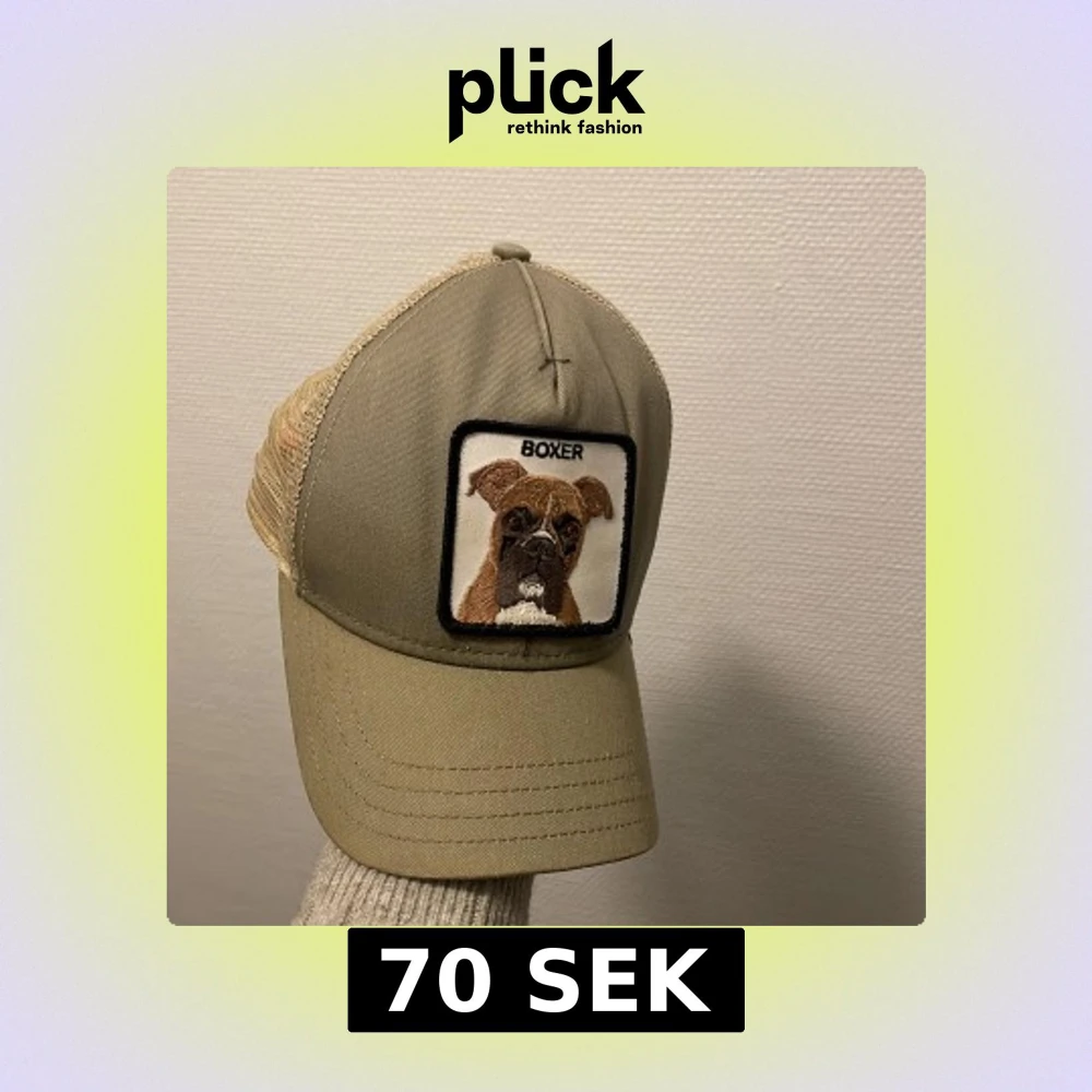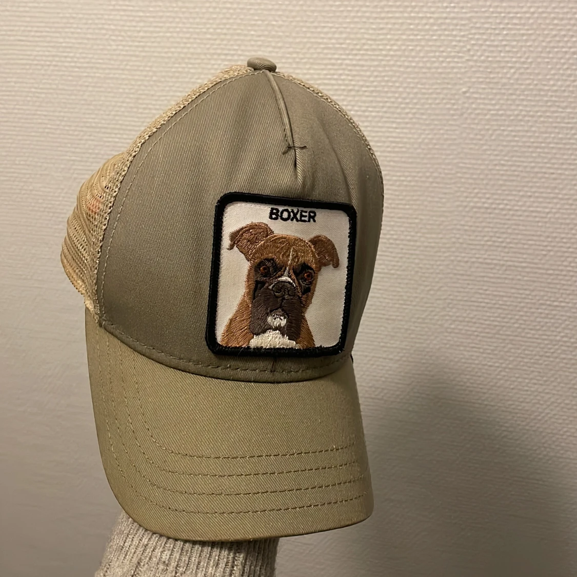 Snygg beige keps från Goorin Bros med mesh-bakstycke och broderad patch framtill med en boxerhund och texten 'BOXER'. Kepsen har böjd skärm och justerbar passform. Perfekt för dig som gillar streetstyle och djurmotiv.