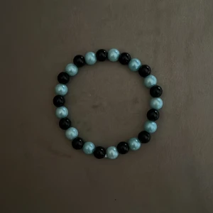 Pärlarmband i färgen svart och blå. Den är elastisk så passar alla.