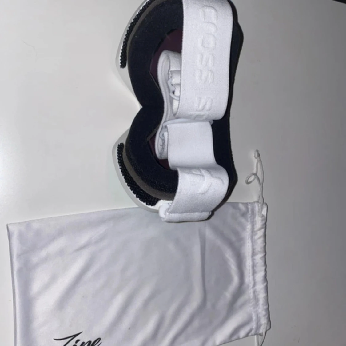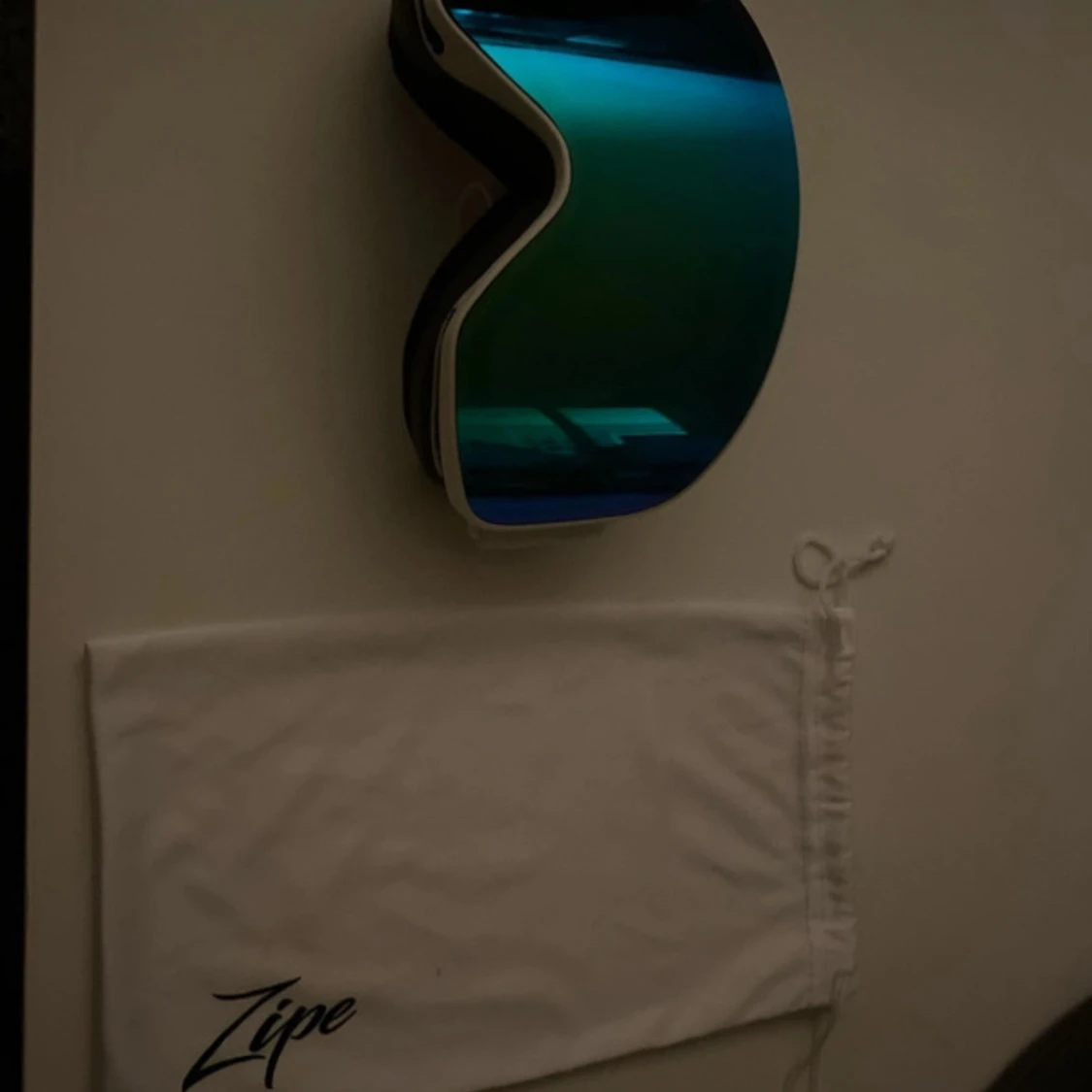 Säljer ett par Zipe skidglasögon med blått spegelglas och vit ram. De har en bred, vit elastisk rem med Zipe-logga och kommer med en vit skyddspåse. Glasögonen har en modern, rundad form och passar perfekt för vinterns äventyr i backen.