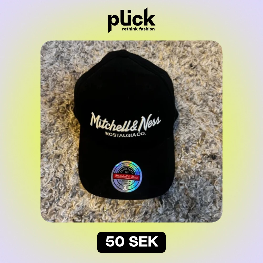 Säljer en snygg svart keps från Mitchell & Ness med broderad text på framsidan. Kepsen har en klassisk design och är perfekt för vardagsbruk. Insidan av skärmen har coola detaljer och texten 'Pappa' med ett hjärta. Passar perfekt för alla som gillar stilrena accessoarer.