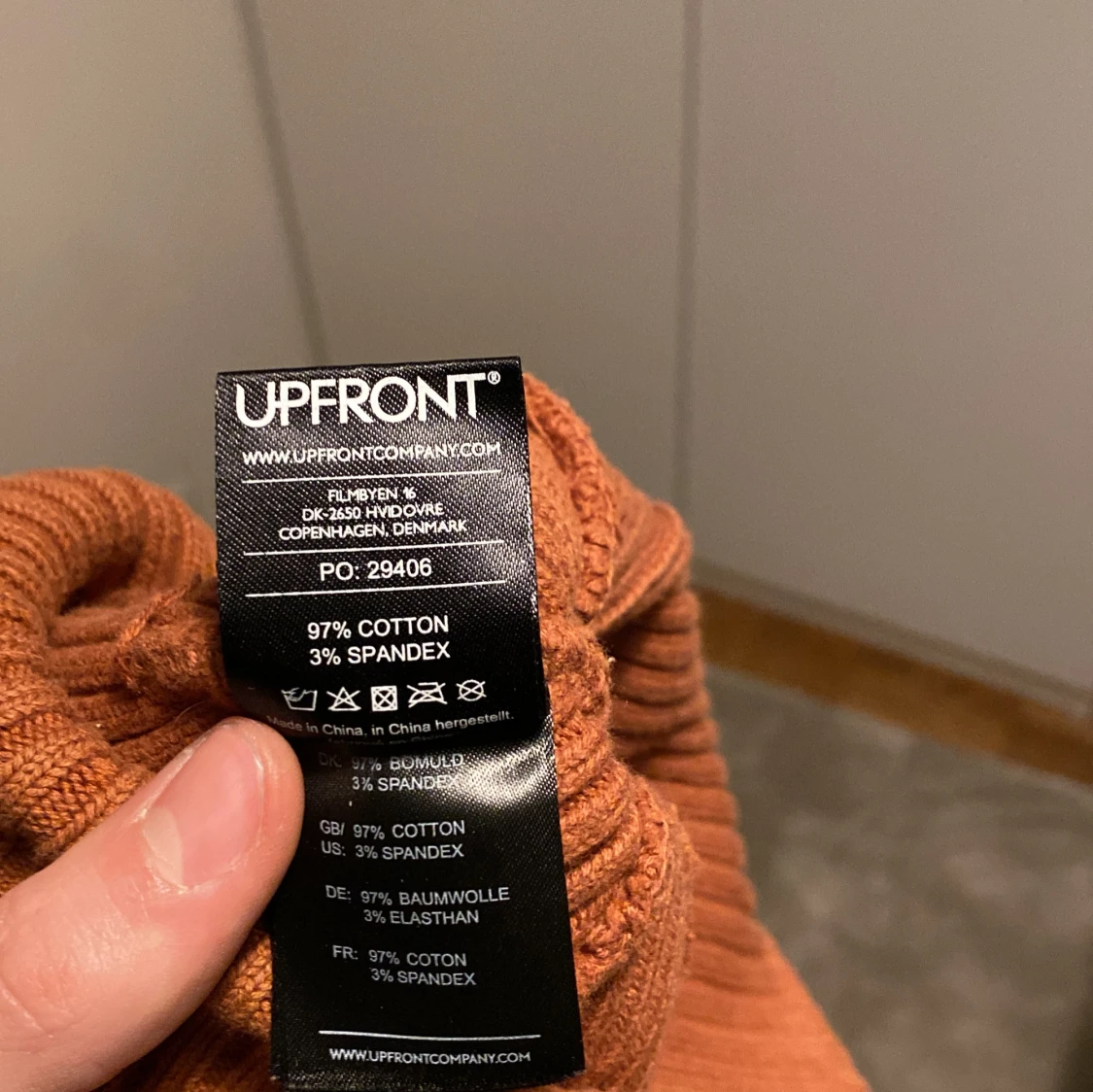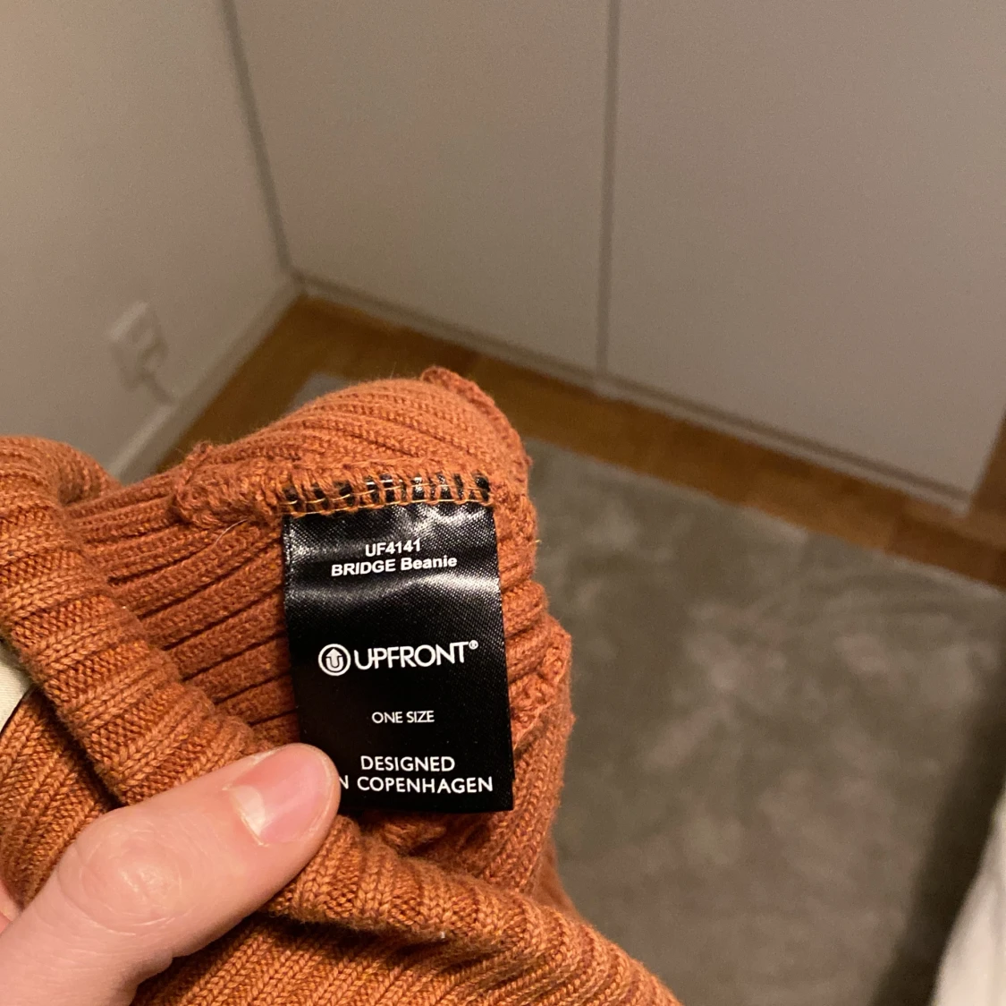 Rostbrun ribbstickad mössa från Upfront, modell Bridge Beanie. One size. Tillverkad av 97% bomull och 3% spandex. Är öppen för ett lägre pris vid snabb affär. Om ni har några frågor skriv gärna!