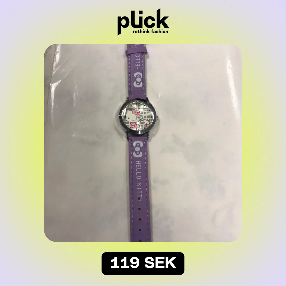Säljer flera Hello Kitty klockor med söta motiv på urtavlan. Finns i lila, vit, rosa och röd med matchande band. Perfekt för alla Hello Kitty-fans! 🐱. Nya batteri, 119kr/st
