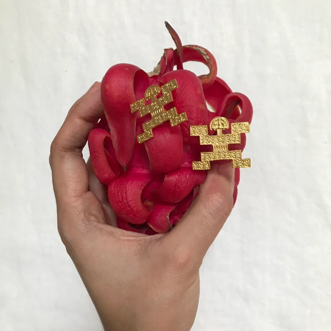 Preloved Precolombian Style Cufflinks Goldplated Precolombian Jaguar Motif Handcrafted in Colombia