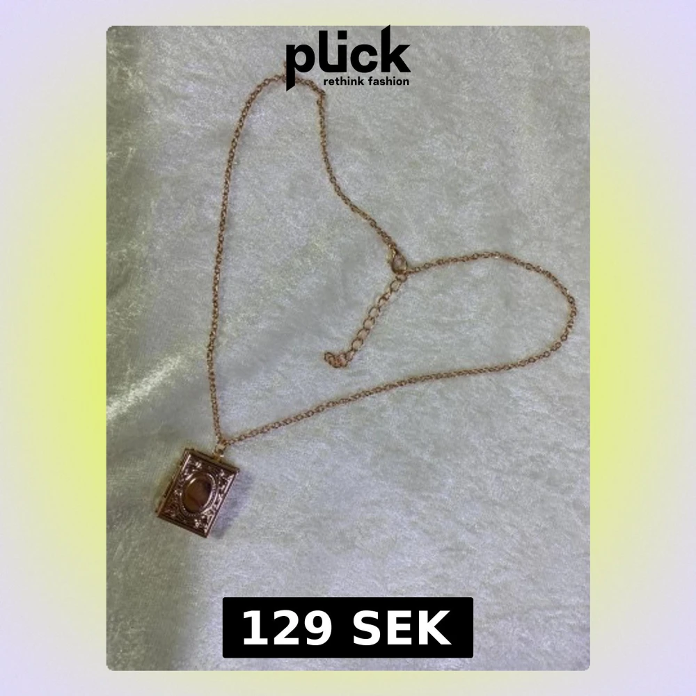 Unikt halsband med en tunn kedja i guldfärg och en fotoram som ser ut som en liten bok. Medaljongen går att öppna och har plats för två små bilder. Detaljerad gravyr på framsidan ger en vintagekänsla. Perfekt för dig som gillar personliga smycken med cool design. Ros gul färg