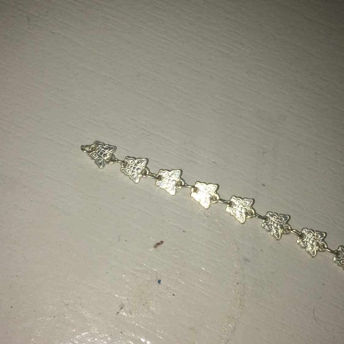 Ett fjärilsarmband i silver. Köpt för 50kr. Säljs pga för litet. Använt ett fåtal gånger och inget slitage. Säljs pga för litet. Kedja på 14cm