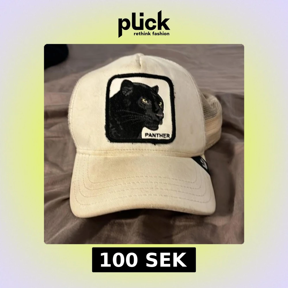 Snygg vit keps från Goorin Bros med mesh-bakstycke och justerbar snapback. Framtill finns en broderad patch med svart panter och texten 'Panther'. Perfekt för dig som vill sticka ut med en cool detalj.