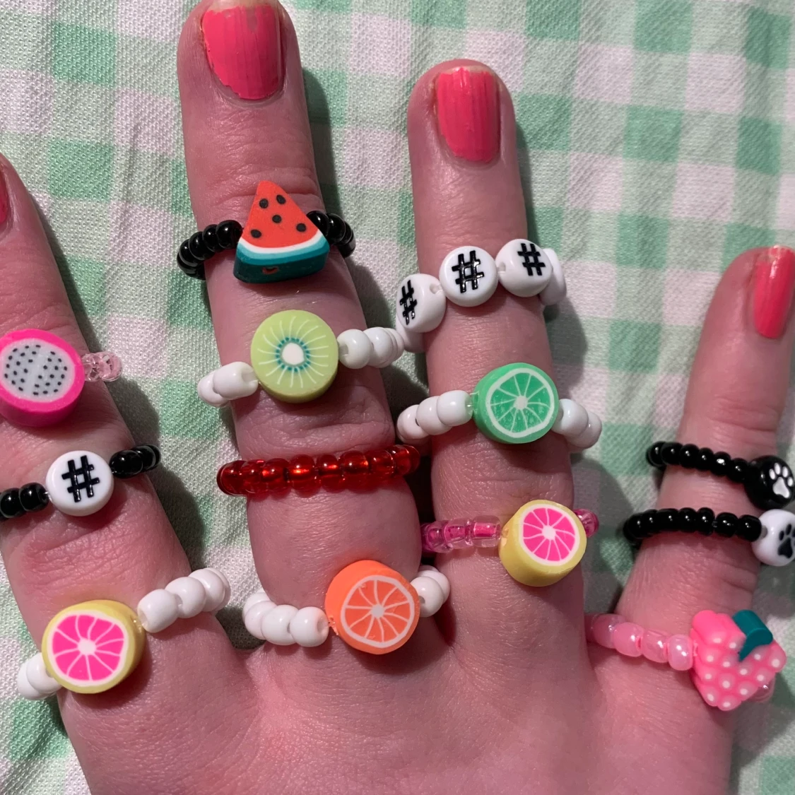 Ringarna kostar 15 kr/st!! Vid köp av 5 fĂ„r du den 6:e gratisđTrĂ„den Ă€r elastisk!!đKöparen stĂ„r för fraktenđ„°