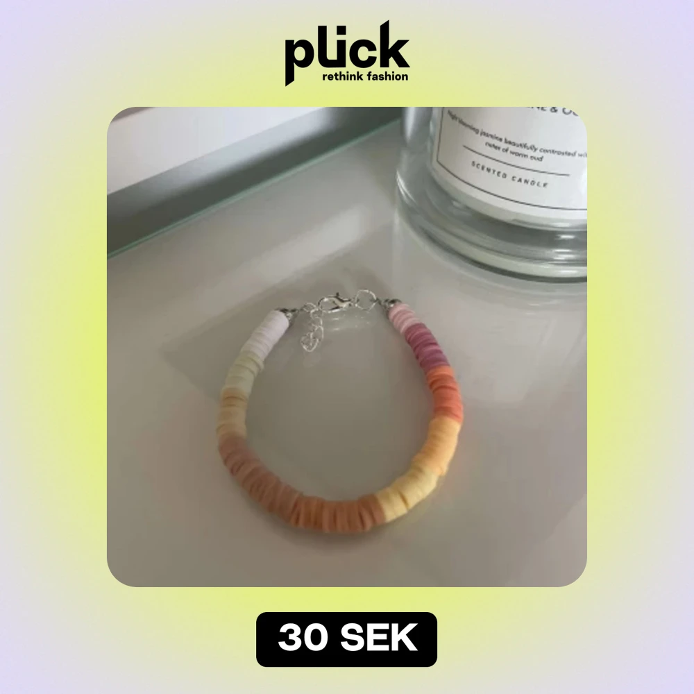 Säljer ett superfint armband med färgglada pärlor i olika nyanser av rosa, orange, gul och vit. Armbandet har en enkel och stilren design med ett smidigt lås. Perfekt för att liva upp vilken outfit som helst!
