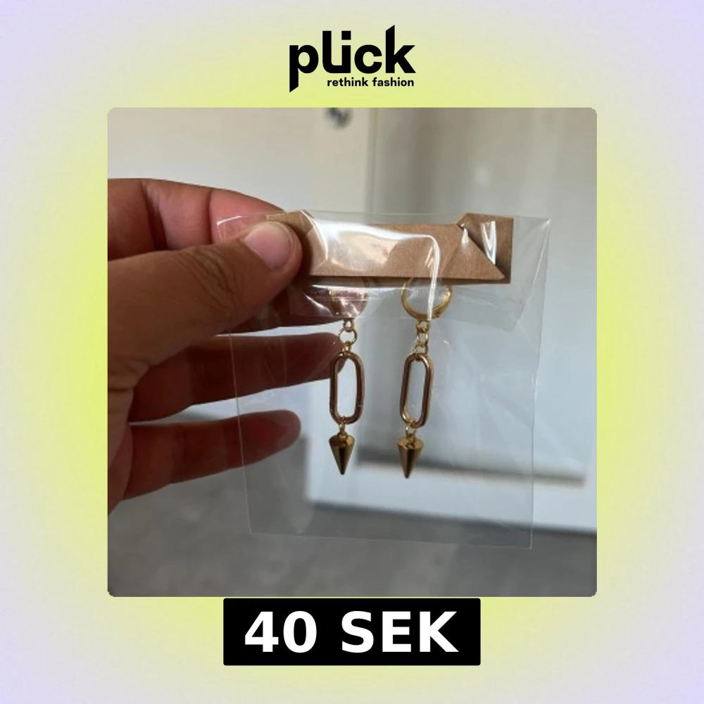 Snygga guldiga örhängen med oval länk och coola konformade spikes som hänger längst ner. Perfekta för dig som vill sticka ut och addera lite edge till din look. Kommer i förpackning, redo att användas direkt.