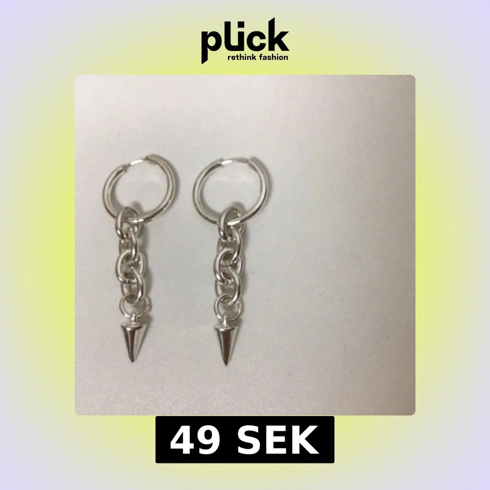 Snygga silverfärgade örhängen med en kort kedja och en spetsig detalj längst ner. Perfekta för att ge en edgy touch till din outfit. De är lätta att bära och passar till många olika stilar.
