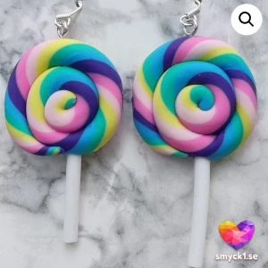 1 par örhängen med godisklubbor i roliga virvelmönster – ser ut som riktigt godis. (Nickelfritt)