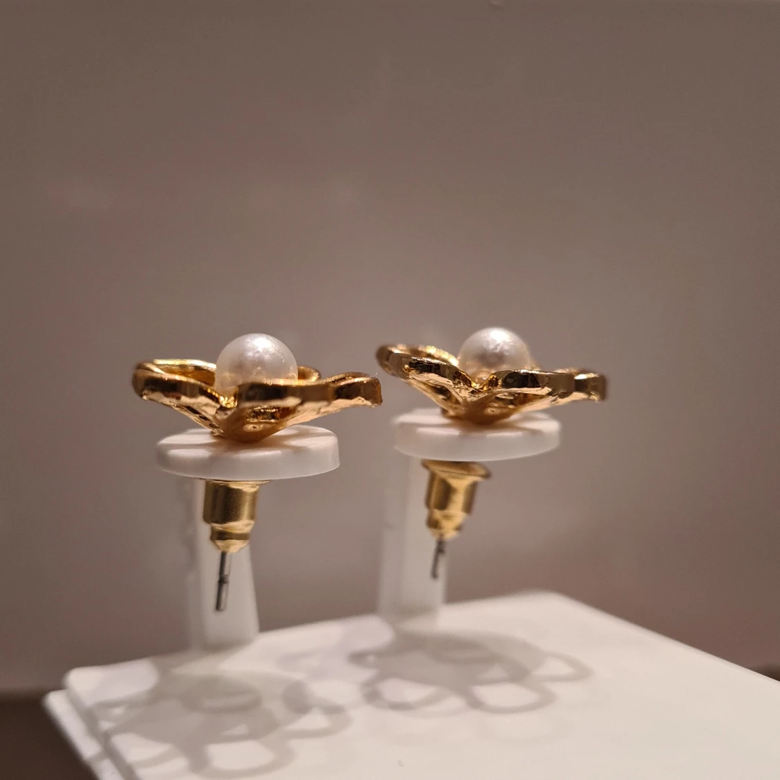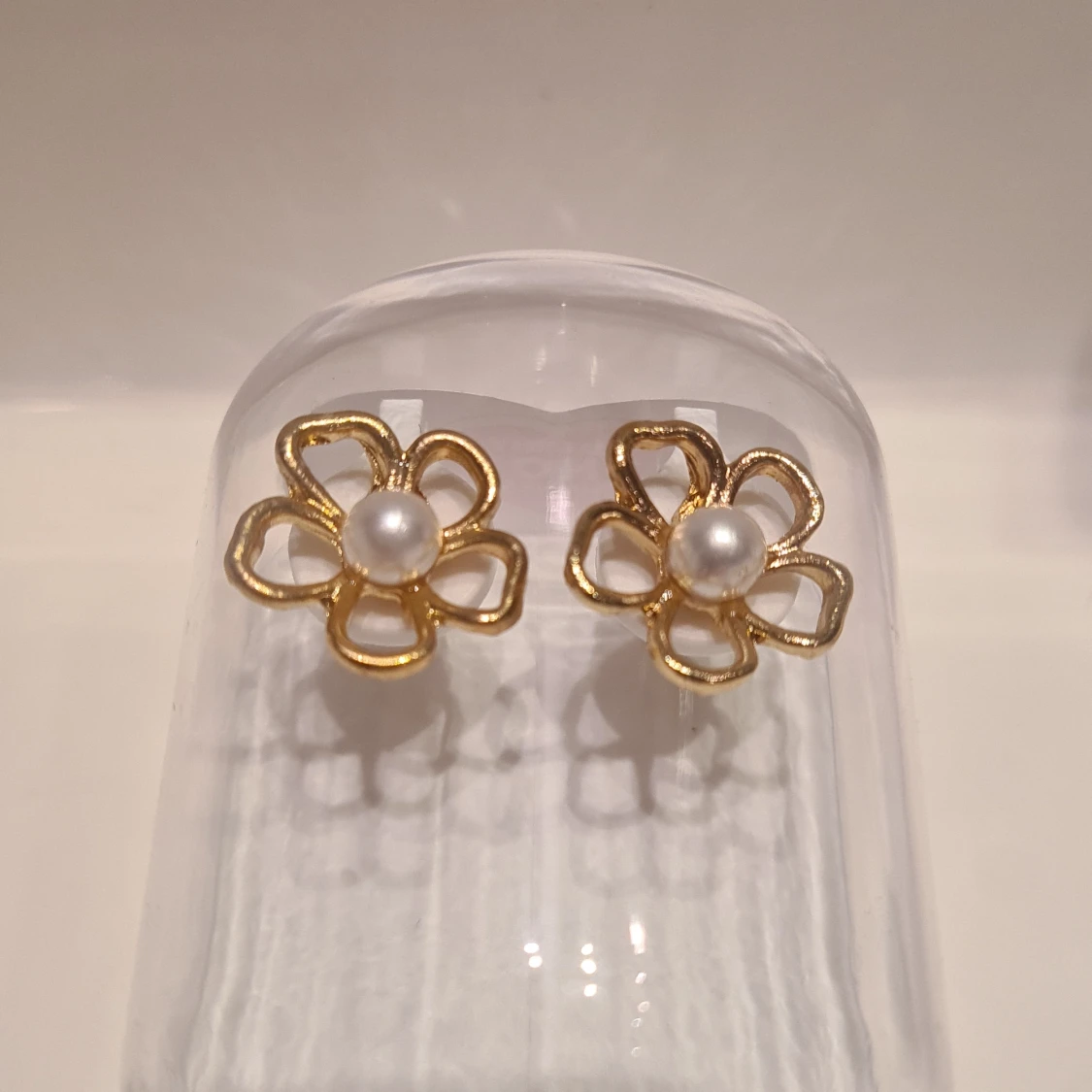 Sjukt snygga guld-örhängen formade som blommor med en pärla i mitten. Säljer för 79 kr. Först till kvarn!!💕💕💕
