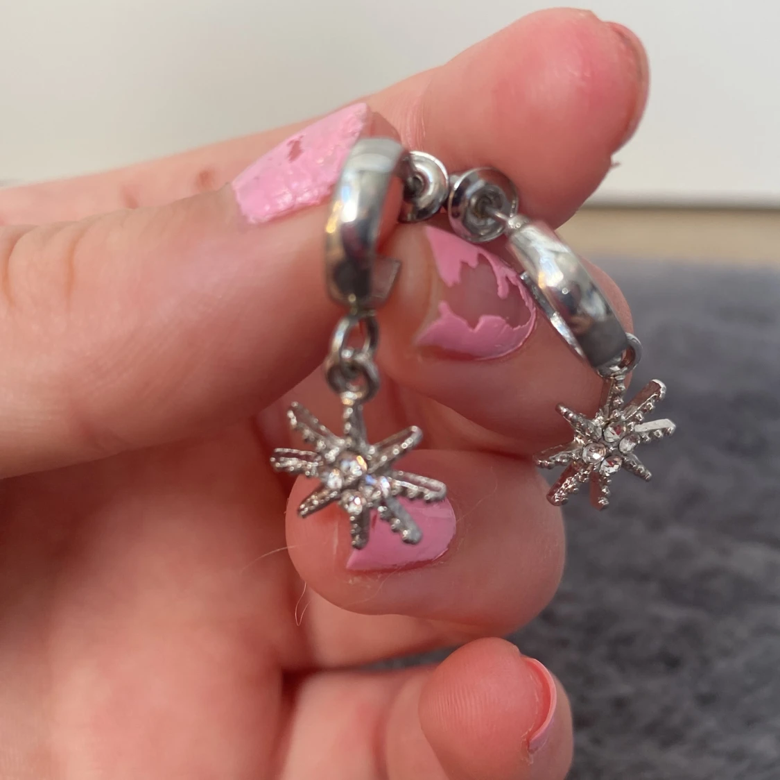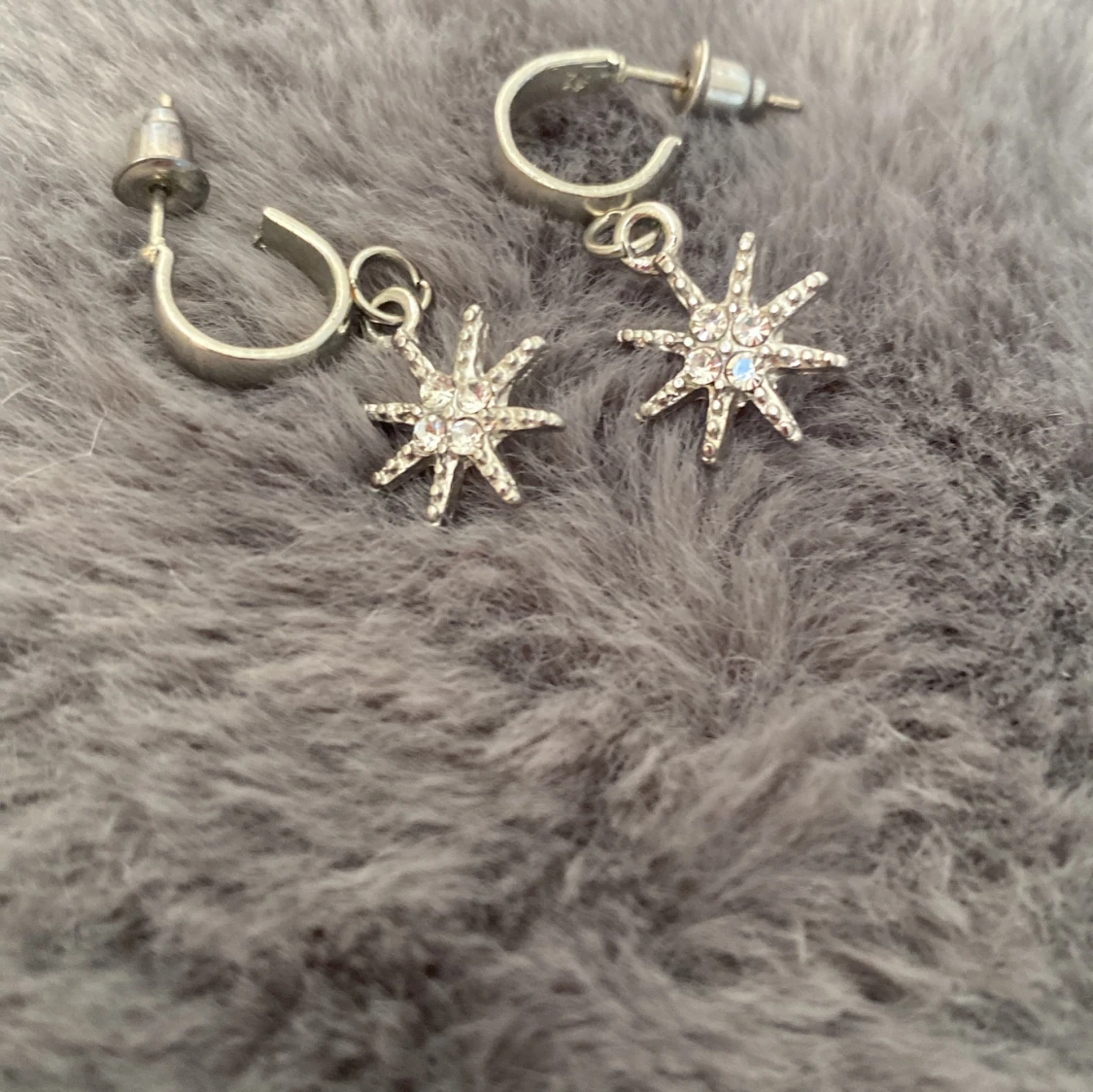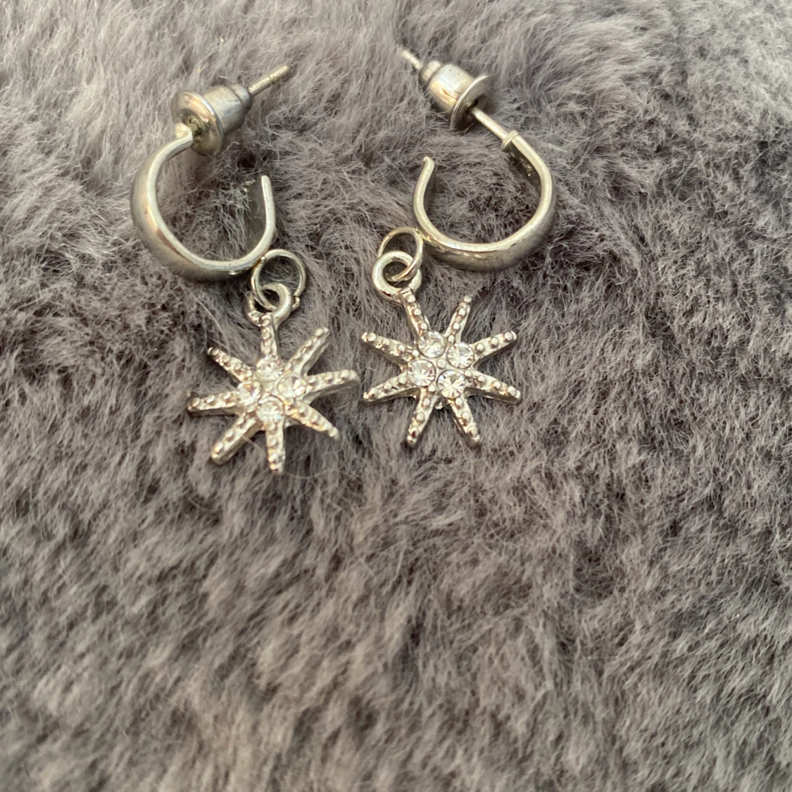 Ett par örhängen med med en liten hängande sol. Örhängena är aldrig använda och har båda pluttarna kvar. Säljer då dom inte används