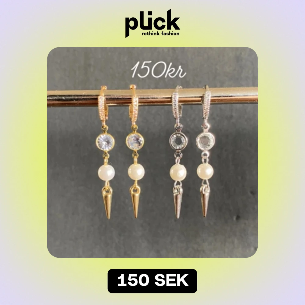 örhängen och halsband  - Stilrena örhängen och halsband inspirerade av Maria Nilsdotter. Material-rostfritt stål. Örhängen längd-3,7cm, halsband längd-40cm. ☝️Vid köp ingår två extra berlocker som kan bytas ut, då själva hänget är ömtåligt och känsligt för stötar.