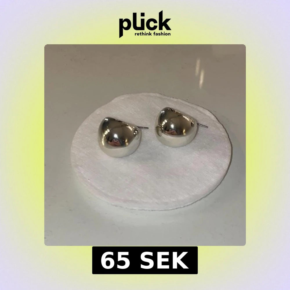 Säljer ett par silvriga dropp örhängen. De har en modern vibe och är riktigt statement med sin glansiga yta. Perfekta för dig som gillar att sticka ut med accessoarer som syns.