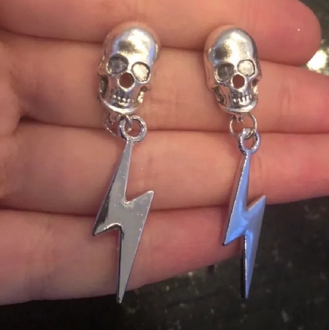 Super coola blixt X döskalle örhängen! 80kr (frakten är inkluderad i priset). Oanvända såklart. Hör av mig vid intresse eller funderingar!💓💀⚡️