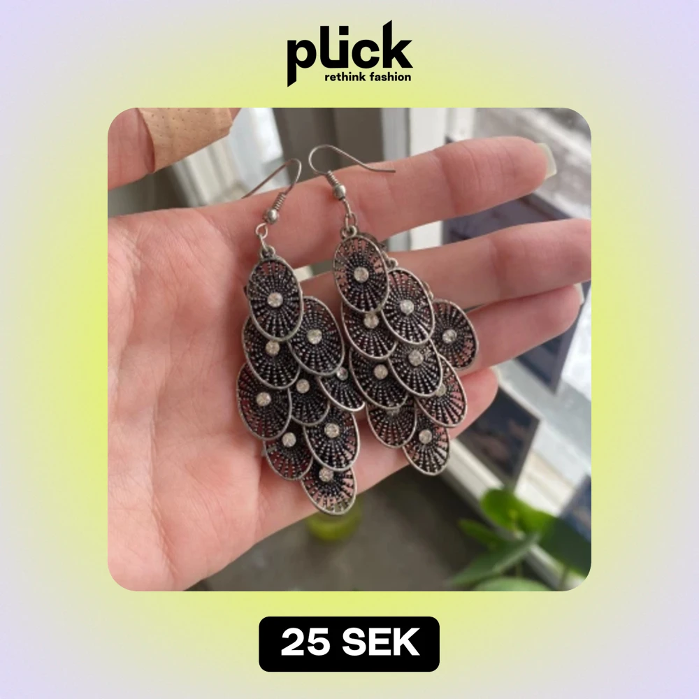Mörka och silvriga örhängen. Lite slitna främst på baksidan, se tredje bild.