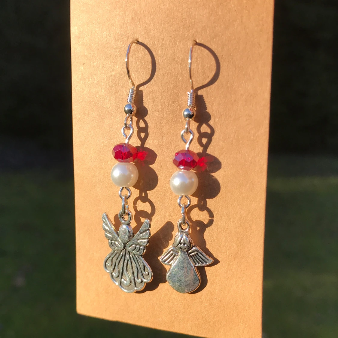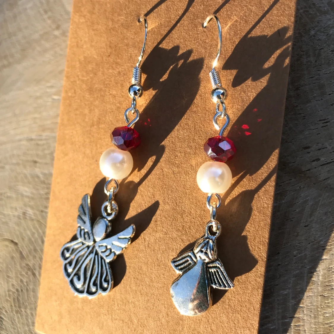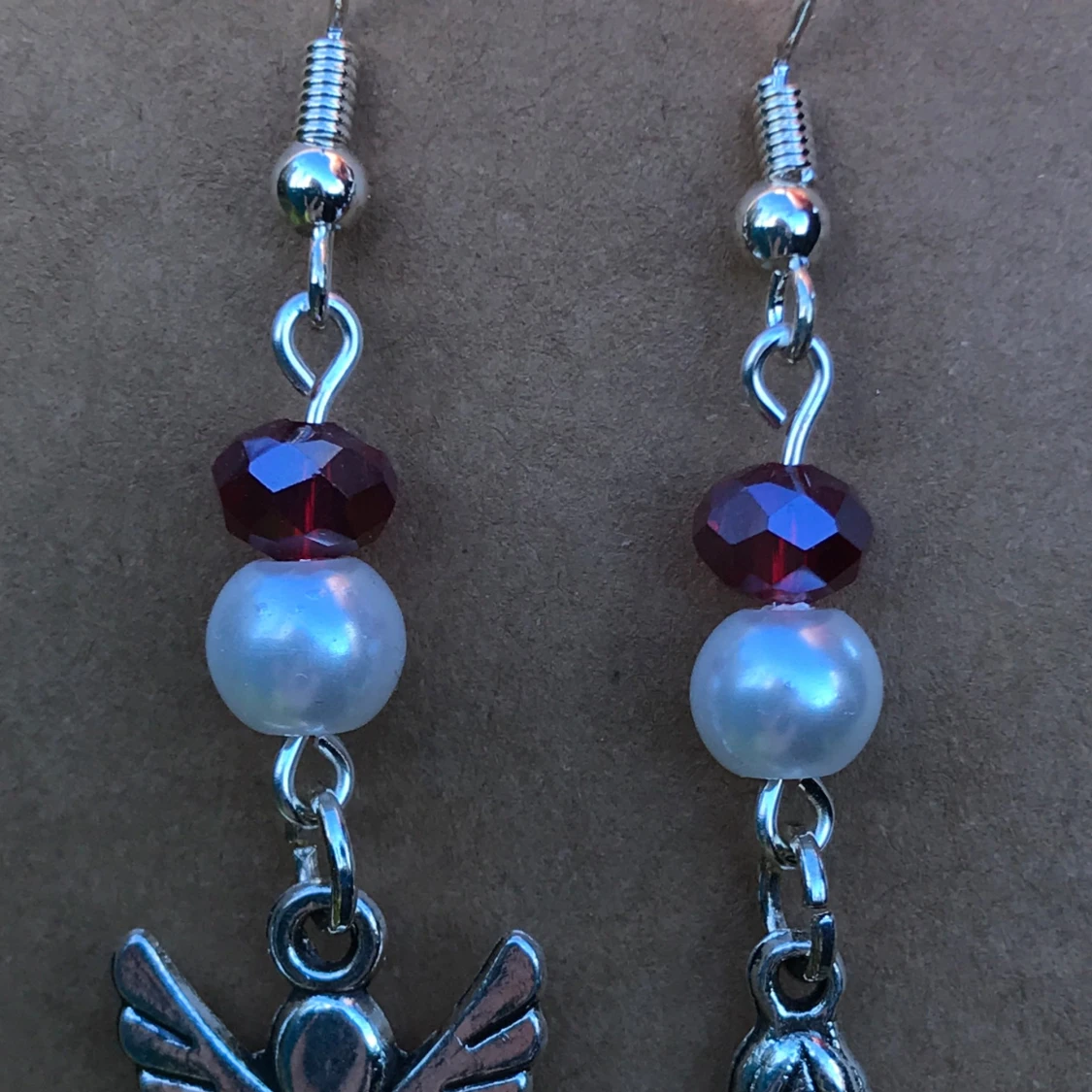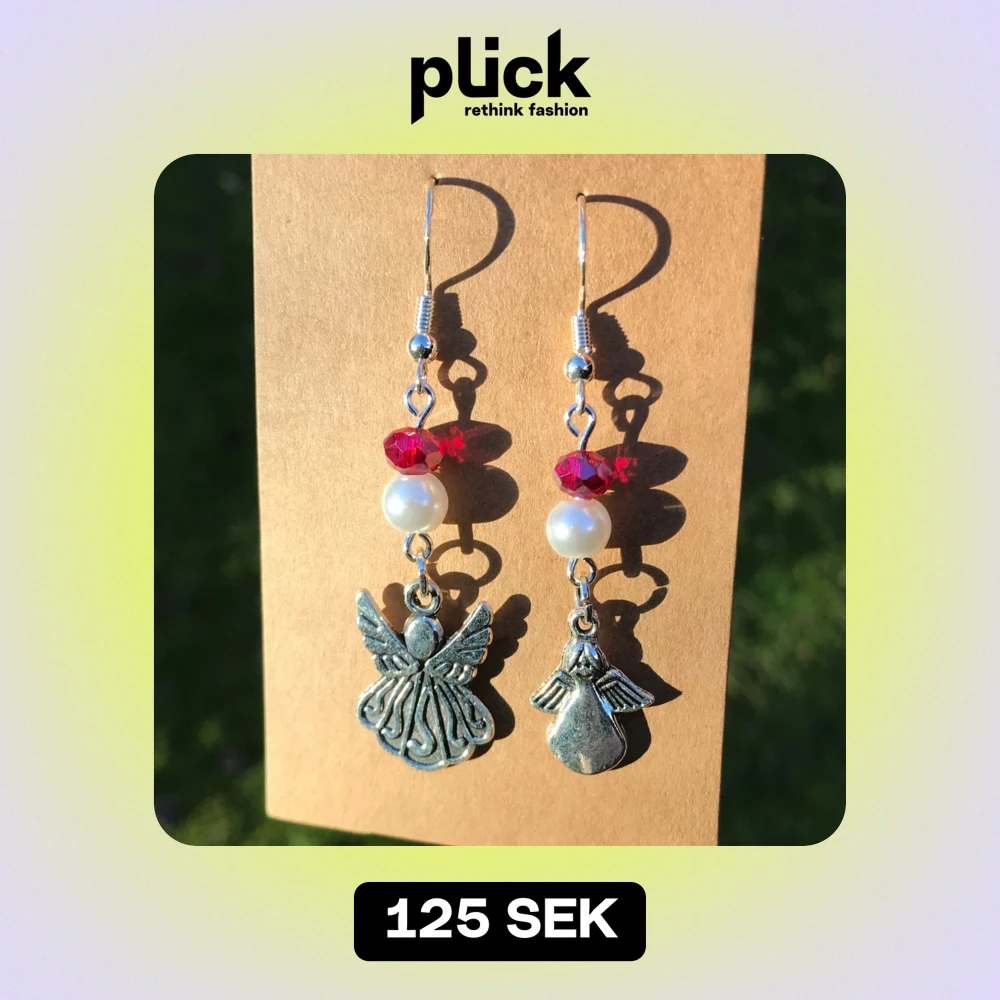 Vackra örhängen av pärlor och ängel-berlocker i silver🪙🔴⚪️