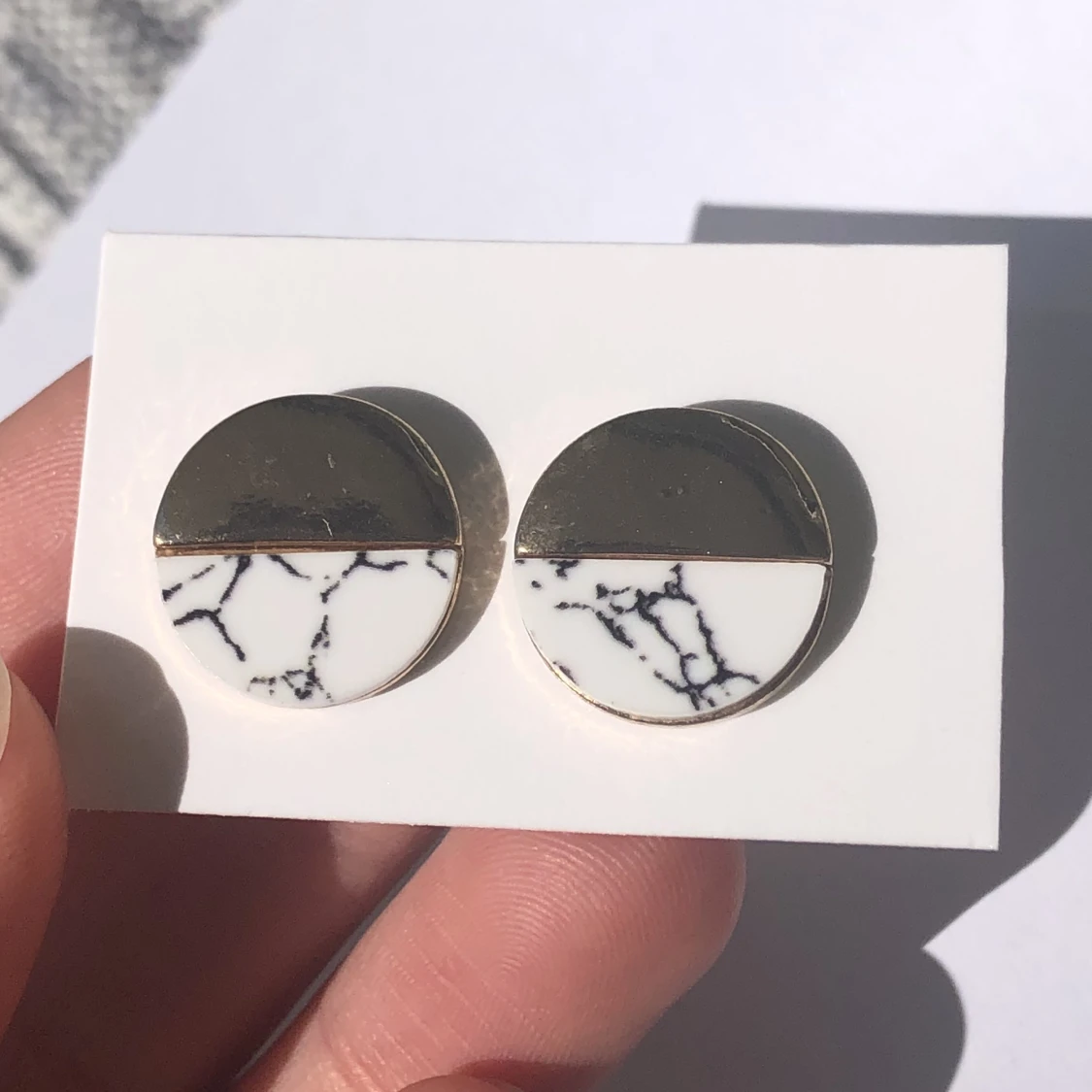 Superfina örhängen i guld färg och marmor mönster. Använd men helt rengjord och dicenficierad såklart. Frakt tillkommer. Skriv gärna vid frågor ✨❤️