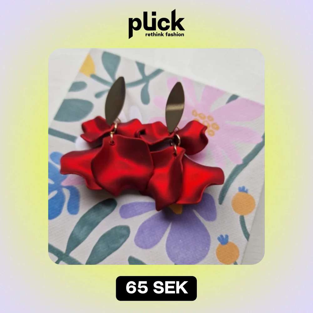 Jättefina nya örhängen i guldfärgad metall och "blomblade" i satinerött. Så fina och lyxiga! Helt oanvända! Väldigt trendiga!