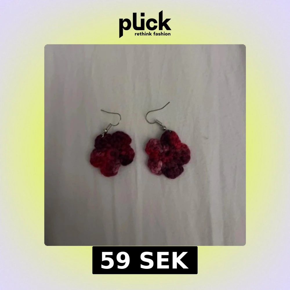 Säljer ett par handgjorda virkade örhängen i form av blommor i olika nyanser av rött och rosa. Perfekta för att ge en färgklick till din outfit! Hängande modell med metallkrok.
