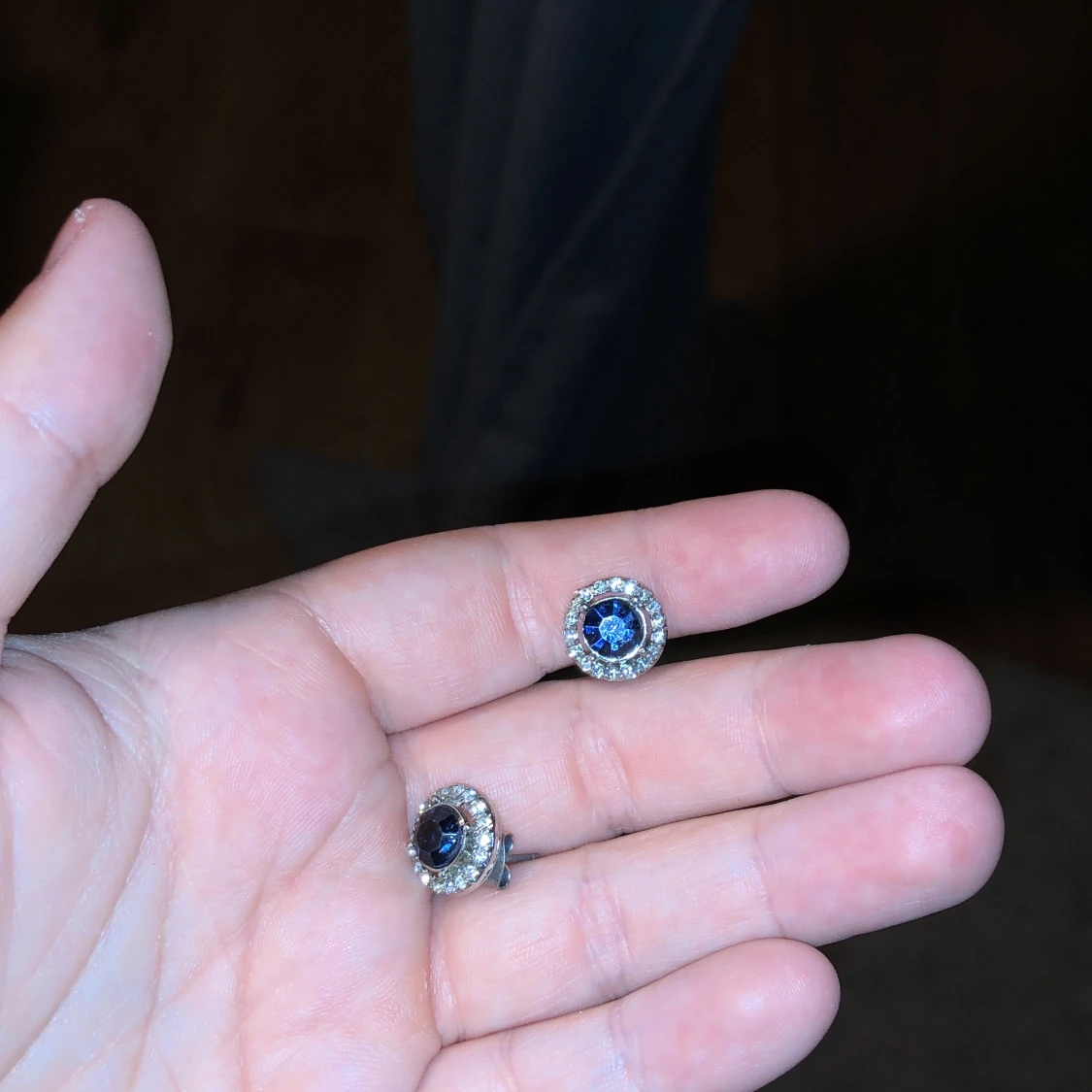 Ett par fina örhängen med blå stenar i. Vet ej om dom är nickelfria eller rostfria, då jag fick dom för länge sedan