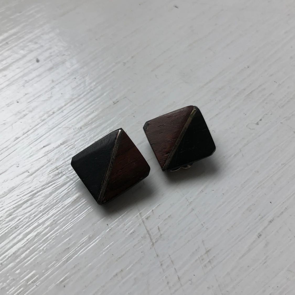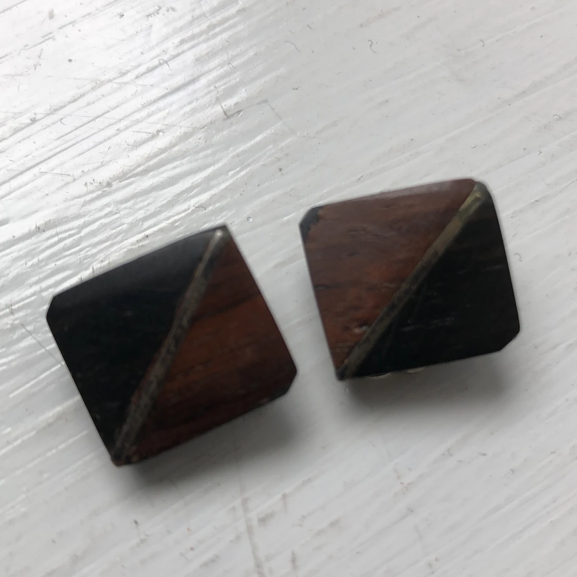 Retro örhängen i trä, med clips. Jättefint skick. Priset är inkl frakt.