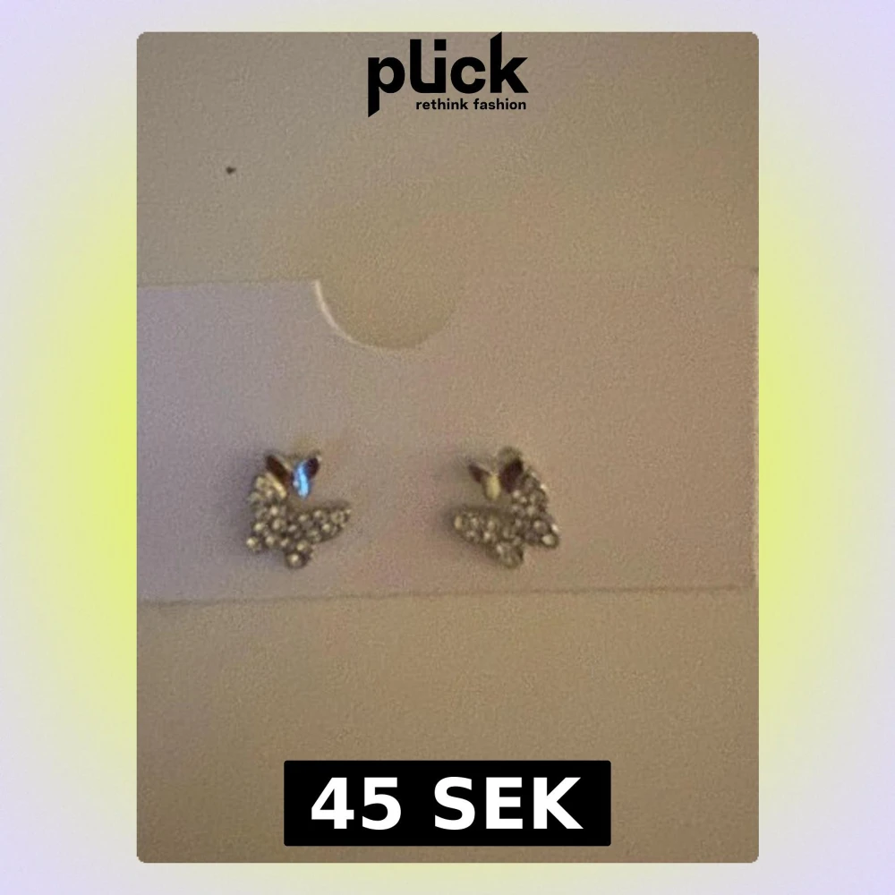 Ett par glittriga örhängen i form av fjärilar, dekorerade med små stenar. Helt oanvända 💕