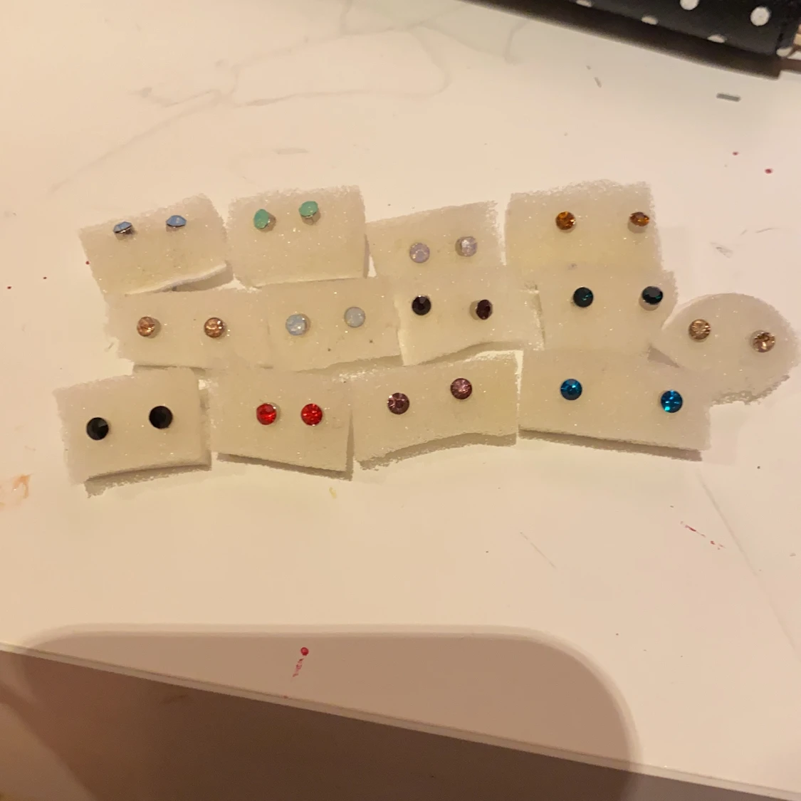 Massa små örhängen i olika färger. Kostar 3kr/paret