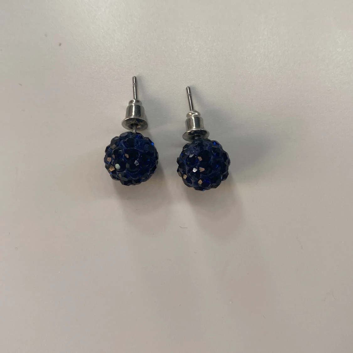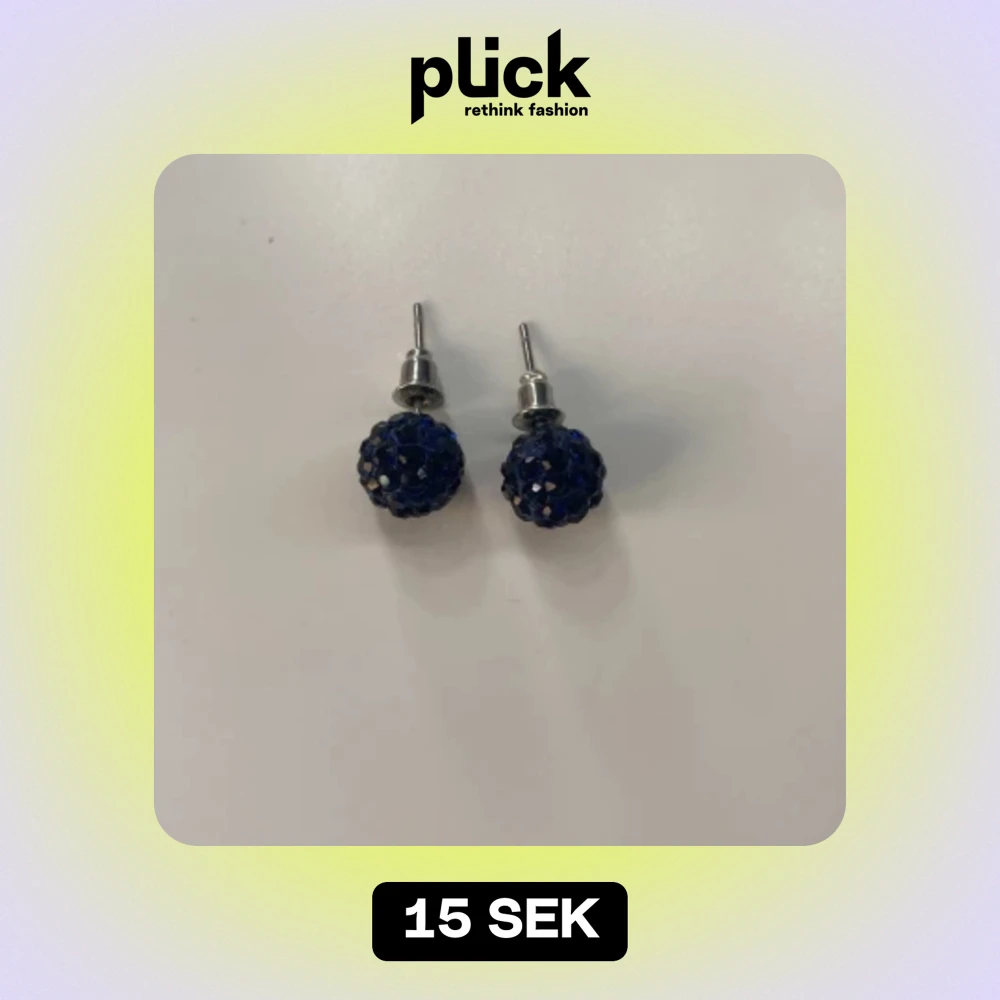 Dessa par örhängen är i färgen marinblå och är glittriga. Som ni ser på 4 bilden har den ett litet märke tyvärr. Men syns nästan inte alls! Skriv till mig här på plick om ni är intresserade!