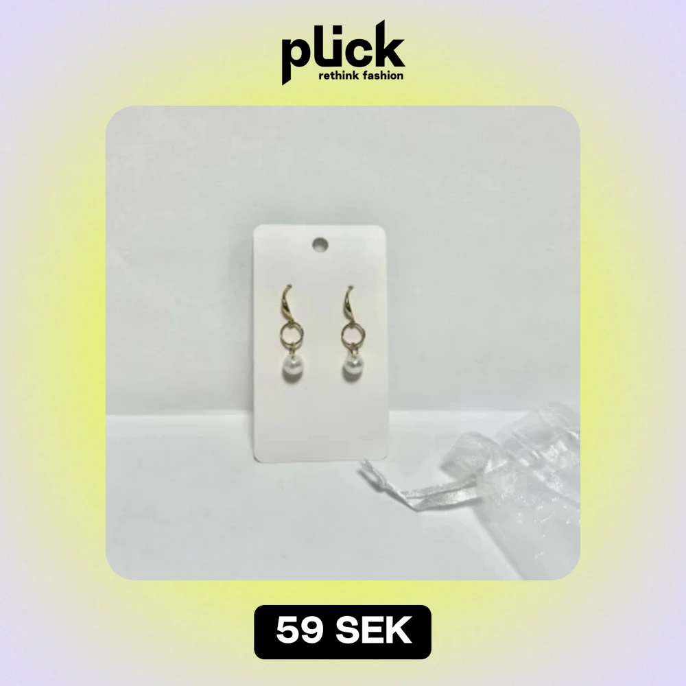 Nickelfria, handgjorda örhängen tillverkade av Smyck uf. Guldiga korta örhängen med pärla. (Oanvända)