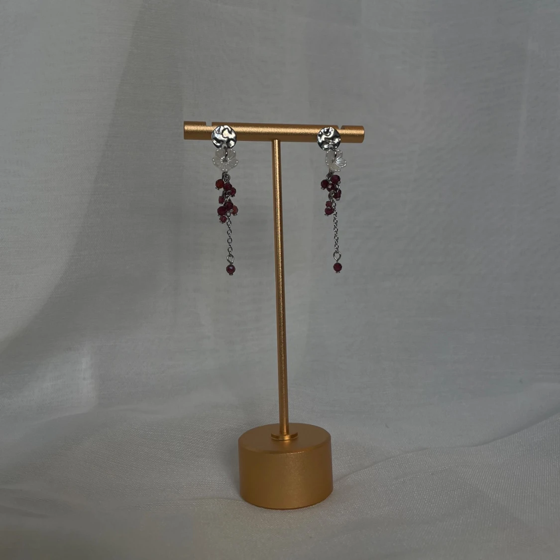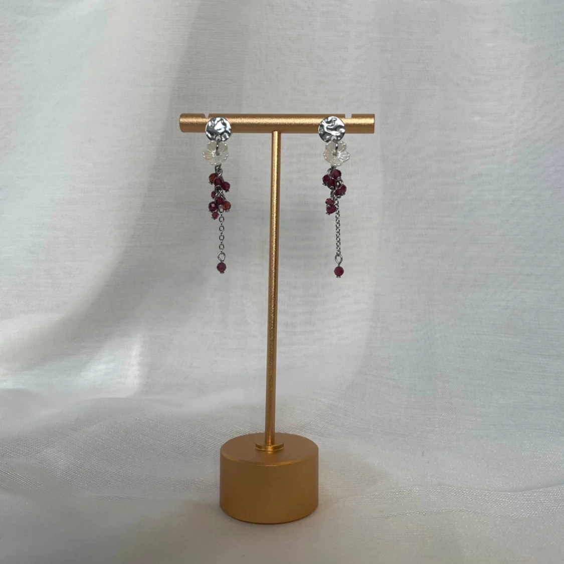 Handgjorda örhängen med vita blommor och pärlor i granit