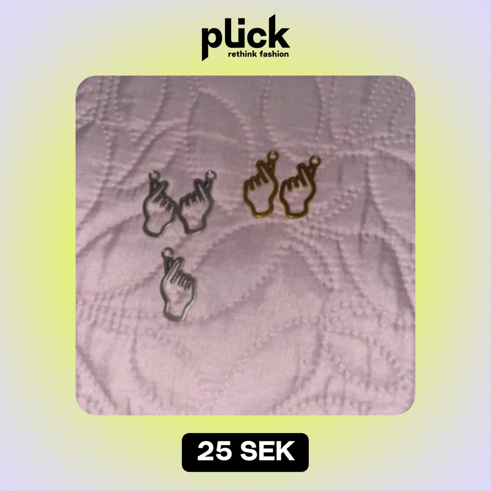 Säljer coola örhängen i form av händer som gör en finger heart-gest. De finns i både silver och guld, perfekt för att ge din outfit en unik touch. Passar bra till både vardag och fest!
